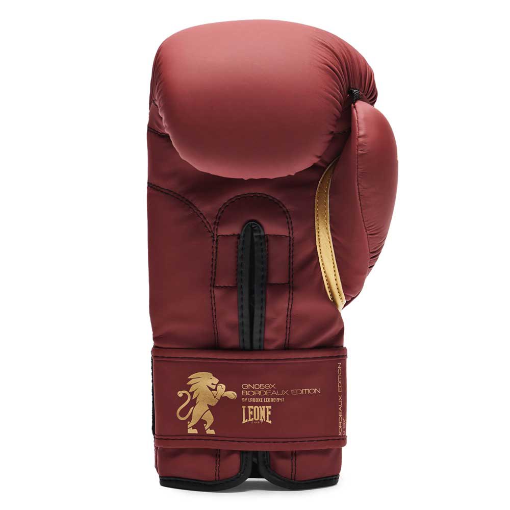 Impulsionado pelo sucesso das cores foscas, Leone1947 propõe uma nova variante: uma luva cor de vinho enriquecida com estampas douradas. Ideal para todas as disciplinas que exigem alças de perto como Muay Thai e K1, essas luvas de couro sintético têm uma camada adicional de preenchimento em forma na parte superior do manguito que protege o pulso e mantém a flexibilidade da articulação