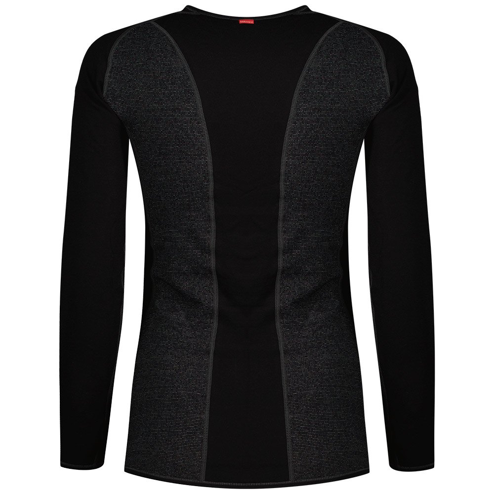 Isolante, transporte perfeito da humidade, secagem rápida, elástico, inodoro, costuras planas, color block com riscas finas e discretas design transtex®, manga comprida com gola redonda, estilo raglan, calças compridas com elástico suave na cintura.