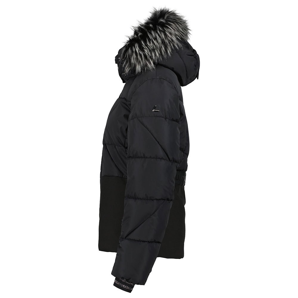 Acabamento do capuz em pele sintética removível.