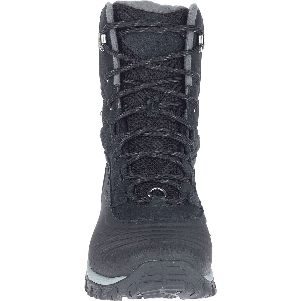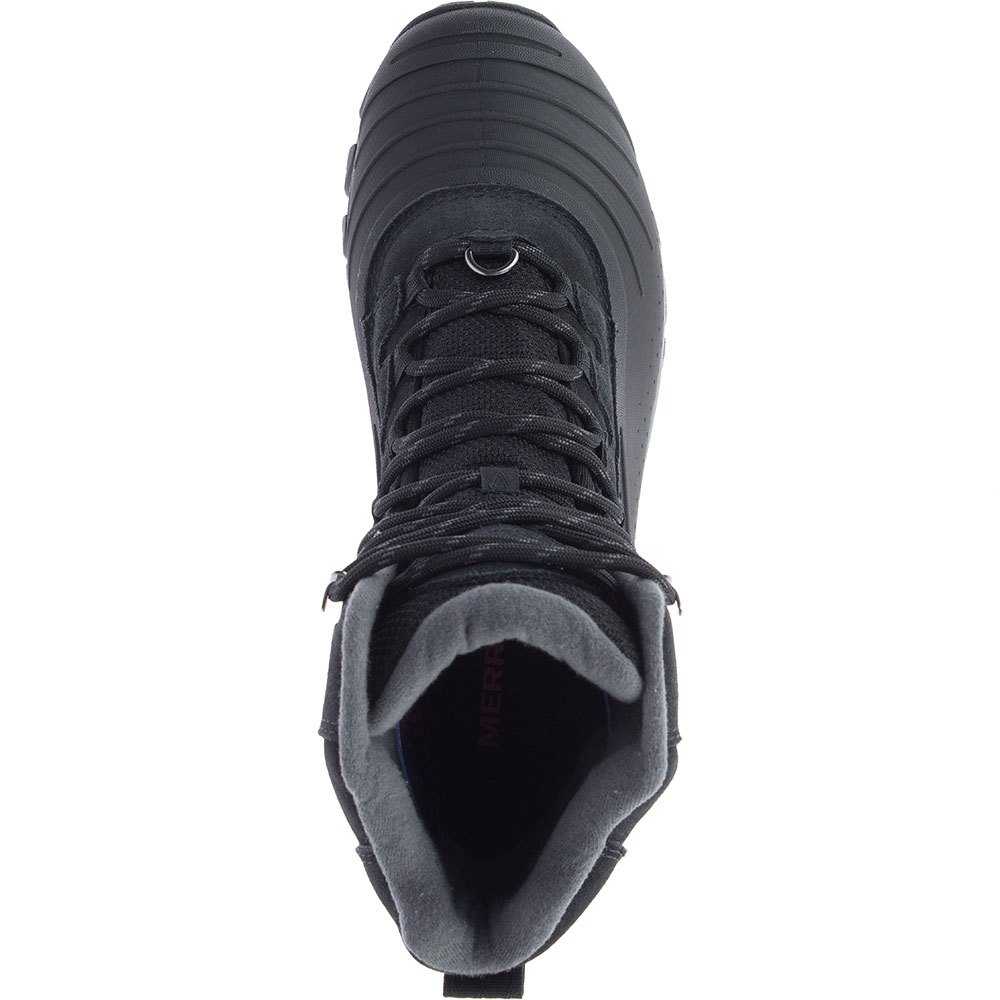 A sola de borracha adesiva Merrell ajustada para o inverno otimiza a tração em condições de superfície de clima frio.