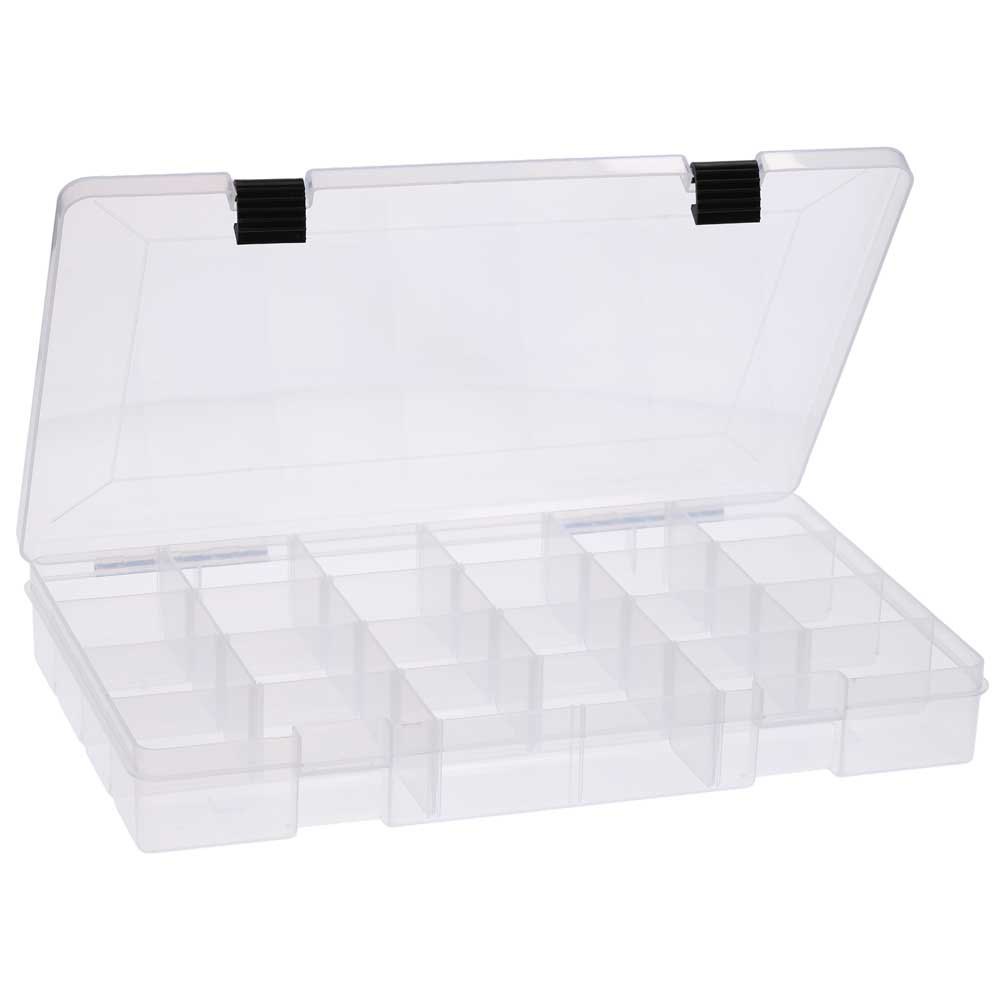 Uma mala de tamanho médio com caixas, uma alça de braço e uma alça, dividida em duas câmaras principais. A parte superior funcionará perfeitamente para armazenar itens de tamanho maior, enquanto a parte inferior, equipada com caixas, é dedicada ao armazenamento de acessórios e iscas.