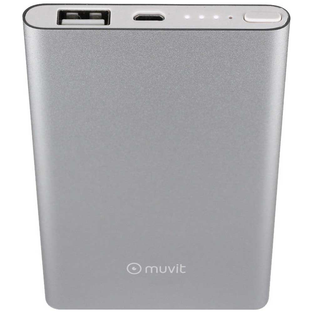 Power bank Muvit 5000 mAh USB 2A USB MicroUSB prata cabo.