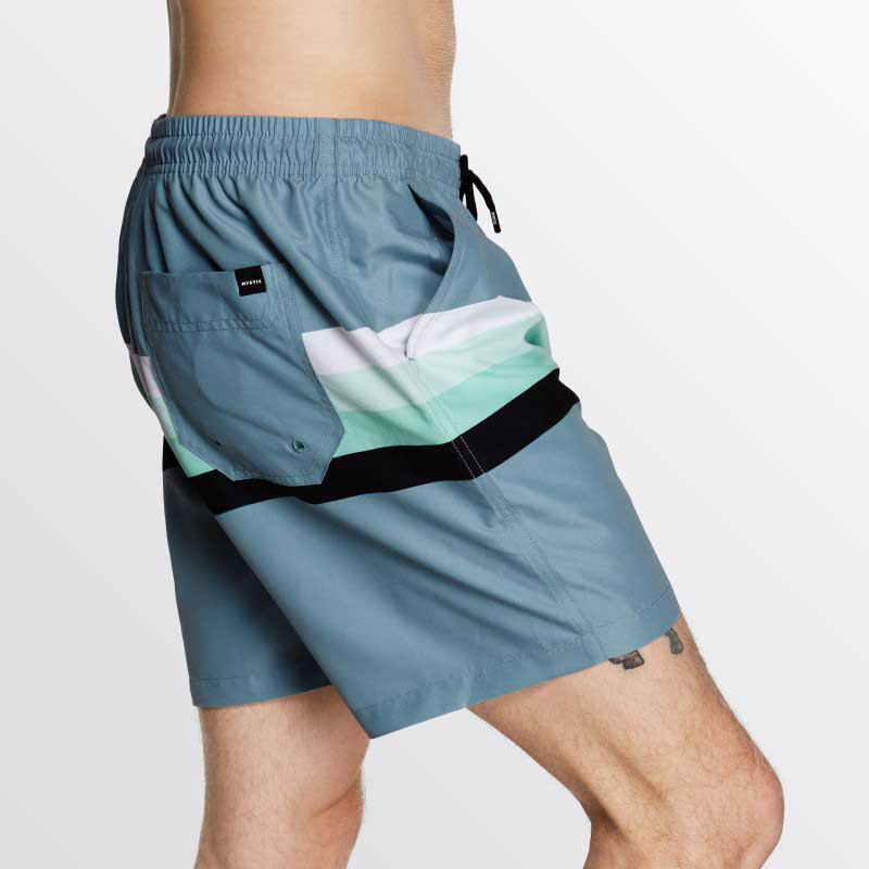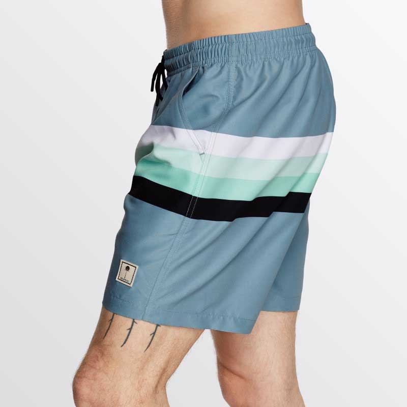 Procure essas bermudas de surf macias e aveludadas e você encontrará beleza nos detalhes. As bermudas de natação Stripe são feitas de tecidos macios e revestidos de microfibra para uso diário. As bermudas de natação com cintura elástica são finalizadas com bolsos frontais e cordão de chave oculto na parte de trás.
