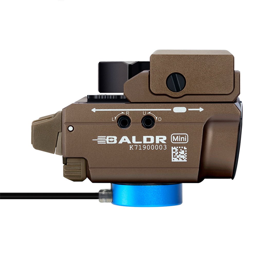 Lanterna LED recarregável para arma subcompacta com laser verde integrado.
