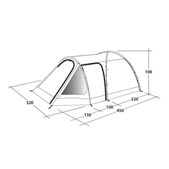 Com espaço para cinco pessoas no seu amplo quarto, com espaço livre, descobrirá que é uma excelente tenda de campismo familiar ou turística. O alpendre profundo sobre sua ampla entrada oferece abrigo flexível.