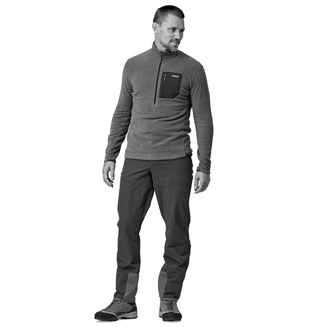 - 92% nailon reciclado/8% spandex duradero y resistente a la intemperie con un acabado DWR sin PFC (recubrimiento repelente al agua duradero que no contiene productos químicos perfluorados) y un interior cepillado para mayor comodidad.