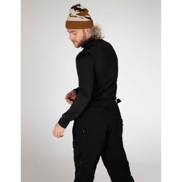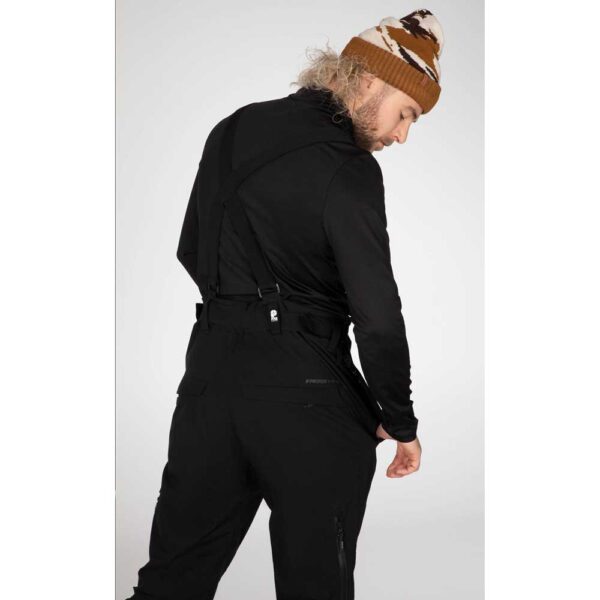 Fecho de cós sólido com botões de pressão, zíper de náilon reverso nos bolsos laterais, puxadores de zíper selados em cores contrastantes e zíperes de ventilação na perna lateral, zíper de náilon reverso atrás da aba do bolso na parte de trás, cintura ajustável com velcro, dardos costurados no topo nos joelhos pré-moldados, arredondados curvos parte inferior, zíper nas pernas inferiores, alças elásticas destacáveis, pernas pré-moldadas.