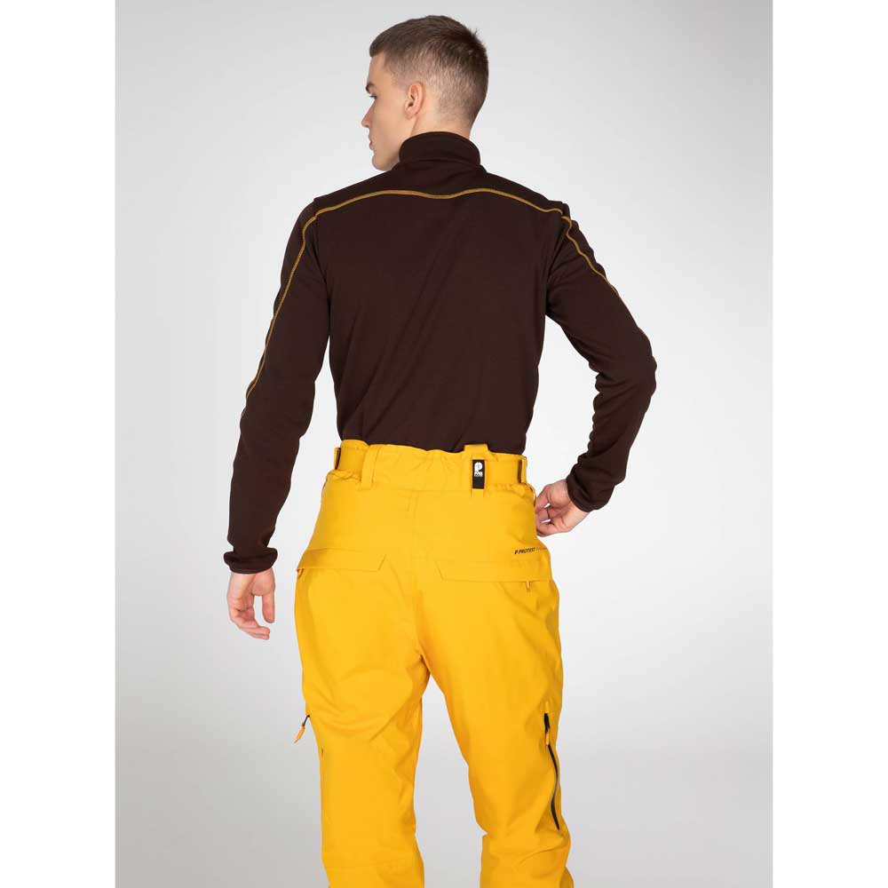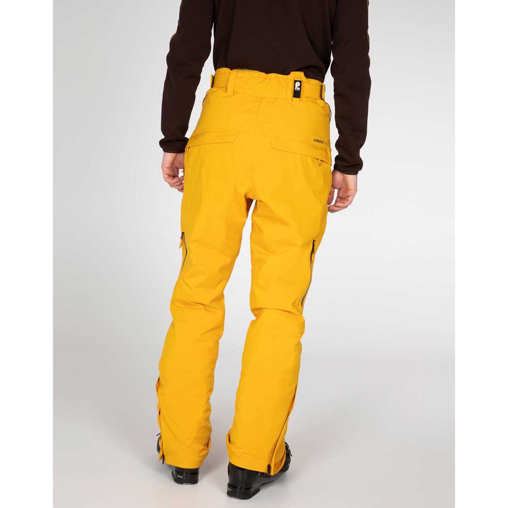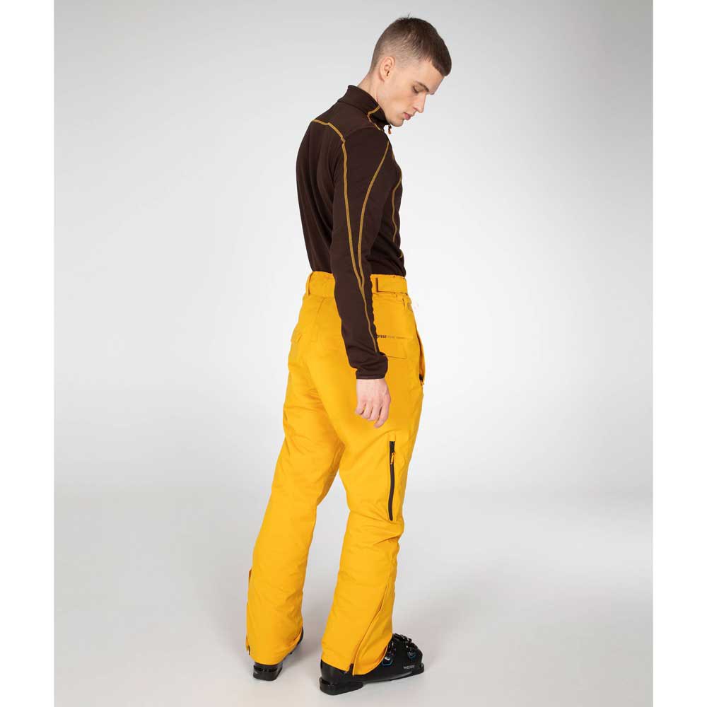 Fecho de cós sólido com botões de pressão, zíper de náilon reverso nos bolsos laterais, puxadores de zíper selados em cores contrastantes e zíperes de ventilação na perna lateral, zíper de náilon reverso atrás da aba do bolso na parte de trás, cintura ajustável com velcro, dardos costurados no topo nos joelhos pré-moldados, arredondados curvos parte inferior, zíper nas pernas inferiores, alças elásticas destacáveis, pernas pré-moldadas.