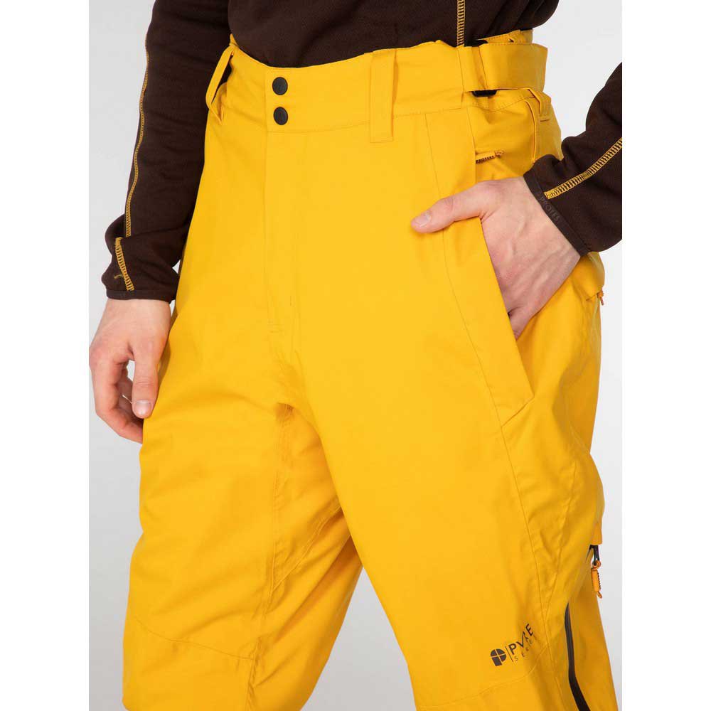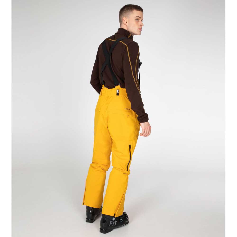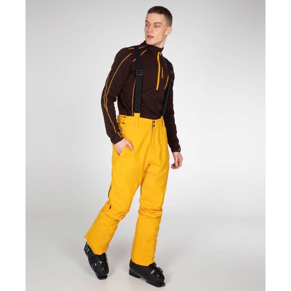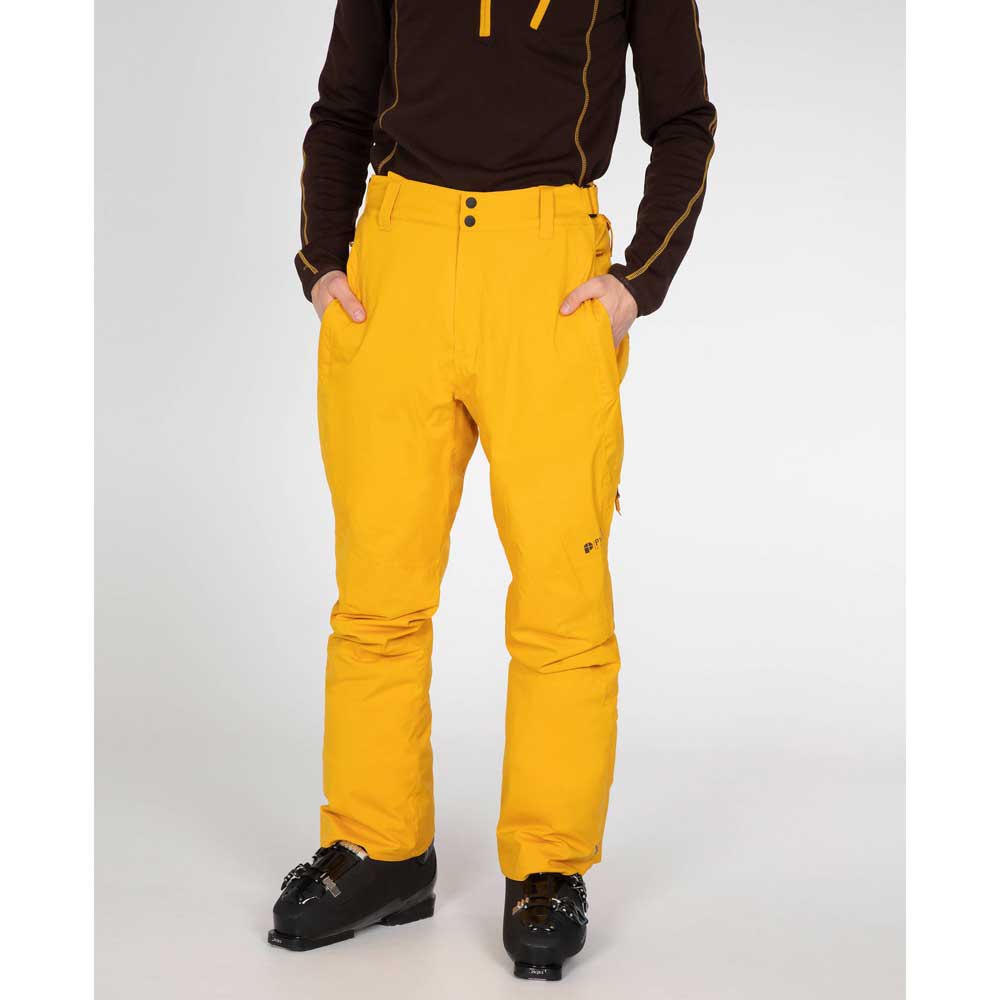 Fecho de cós sólido com botões de pressão, zíper de náilon reverso nos bolsos laterais, puxadores de zíper selados em cores contrastantes e zíperes de ventilação na perna lateral, zíper de náilon reverso atrás da aba do bolso na parte de trás, cintura ajustável com velcro, dardos costurados no topo nos joelhos pré-moldados, arredondados curvos parte inferior, zíper nas pernas inferiores, alças elásticas destacáveis, pernas pré-moldadas.