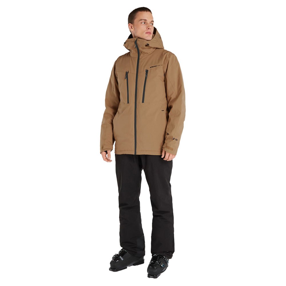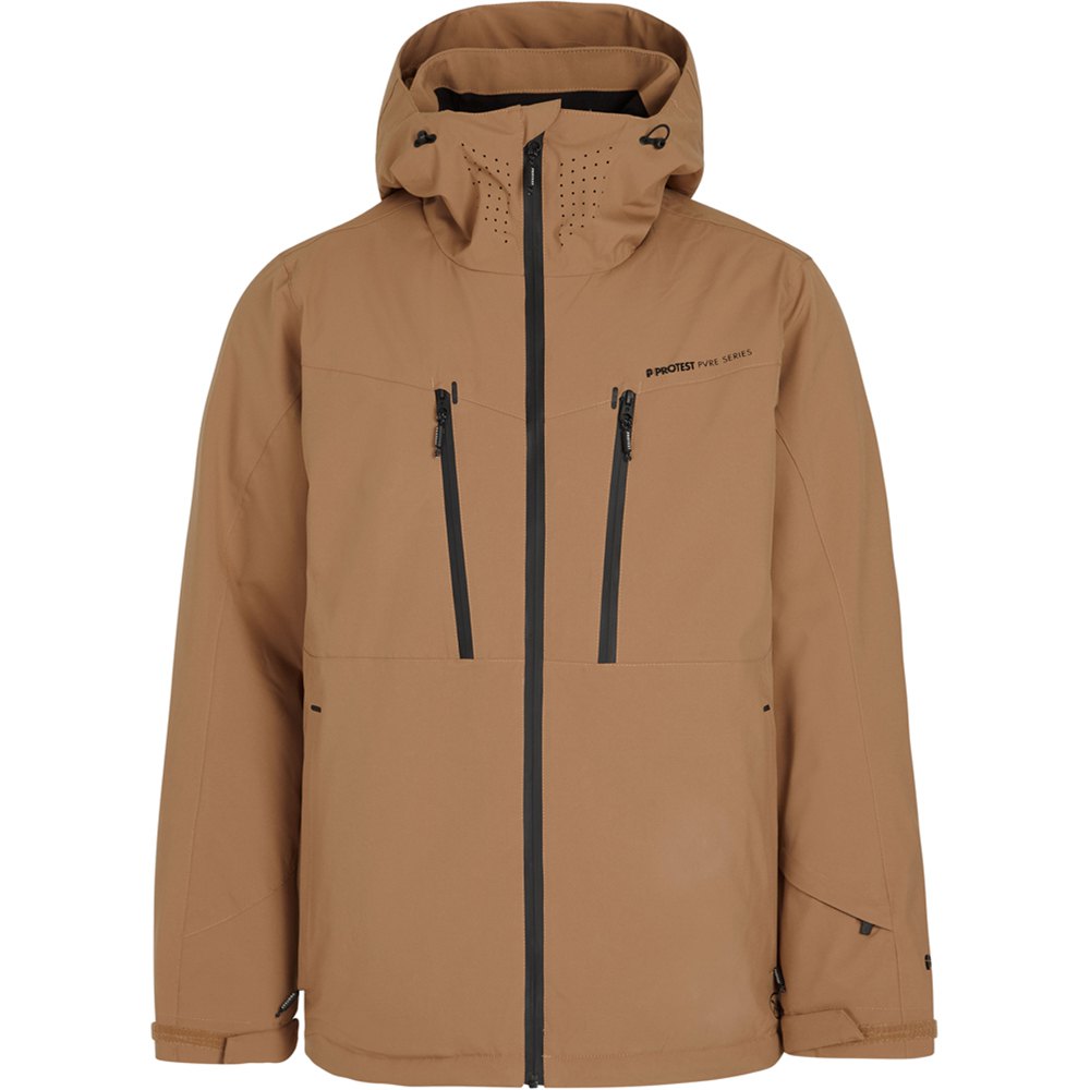 Uma jaqueta com tudo, conheça a jaqueta de esqui e snowboard Prttimo da Protest. Este casaco slim fit faz parte da nossa série PVRE de vestuário técnico superior. Para fazer longos dias gloriosos na encosta, você precisa ficar quente e seco. Esta jaqueta incrível tem resistência à água de 20K e respirabilidade de 20g. Isso basicamente significa que, enquanto nenhuma água está entrando do lado de fora, a umidade que se acumula no interior da jaqueta pode escapar através do tecido. Esta peça tem costuras totalmente coladas, outra medida para garantir que você fique seco. O tecido é livre de PFC e possui elasticidade mecânica para total flexibilidade. Há furos cortados a laser na gola alta que servem para ventilação extra e zíperes de ventilação sob os braços para que você possa regular sua temperatura. O capuz desta jaqueta foi projetado para caber sobre o capacete para maior proteção contra os elementos. O capô pode ser encaixado quando o espaço extra não for necessário. O casaco para levar consigo para as suas aventuras nas pistas, o Prttimo by Protest.