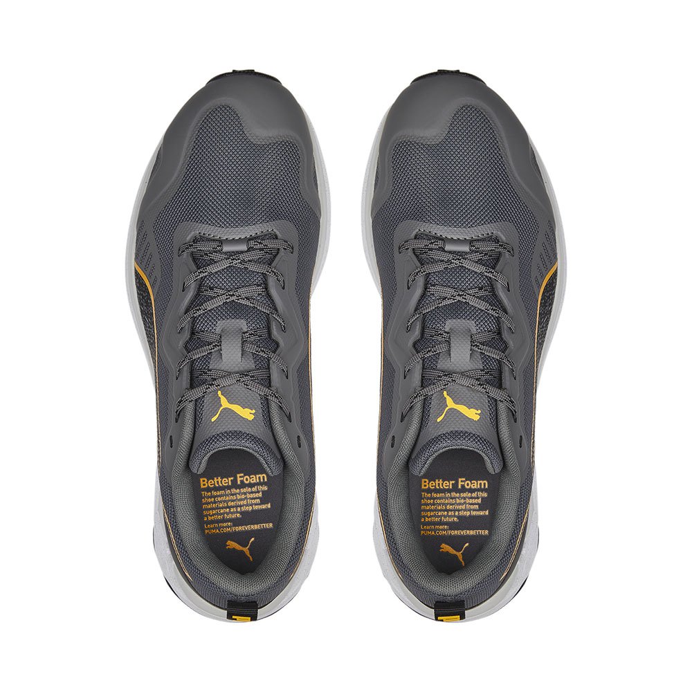 Conheça o mais novo tênis de trilha da Puma. Agora, nada ficará no seu caminho enquanto você enfrenta qualquer terreno com estilo e conforto. Estes sapatos apresentam espuma melhor, que não apenas manterá você leve em seus pés, mas fará você se sentir bem por estar fazendo algo pelo meio ambiente: é criado com 50% de cana-de-açúcar de base biológica Cmeva. Do gelo à neve, terra em declive ou trilhas lamacentas, o que quer que você enfrente em sua corrida, estes são os sapatos que você precisa.