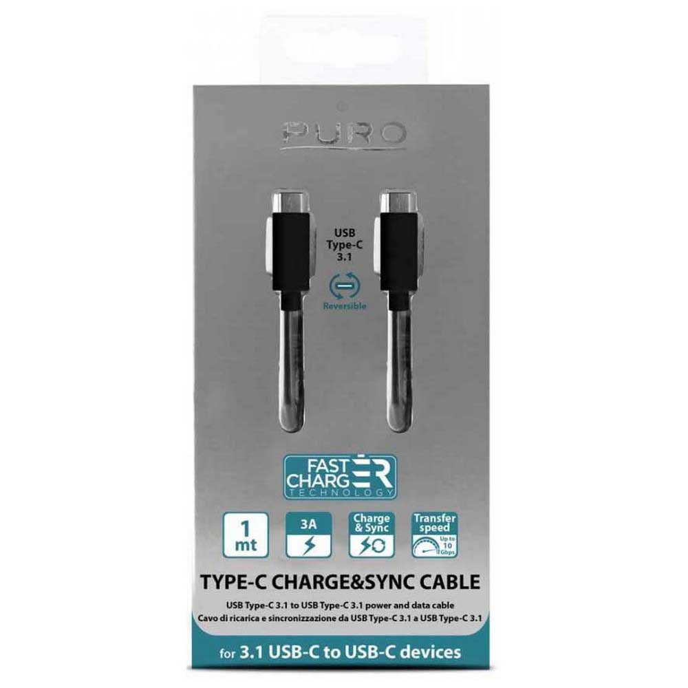 O cabo de carregamento e sincronização Puro com conector Tipo C para Tipo C 3A, tem 1 m de comprimento e é.