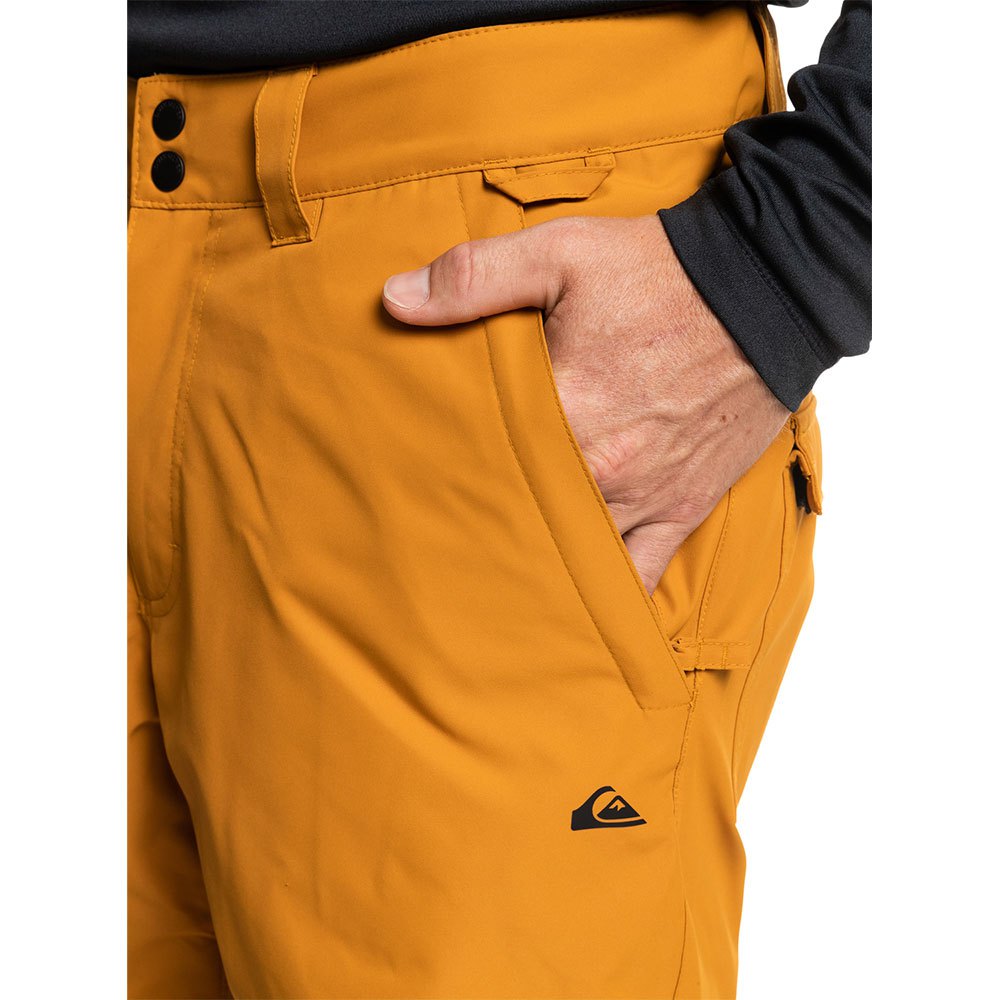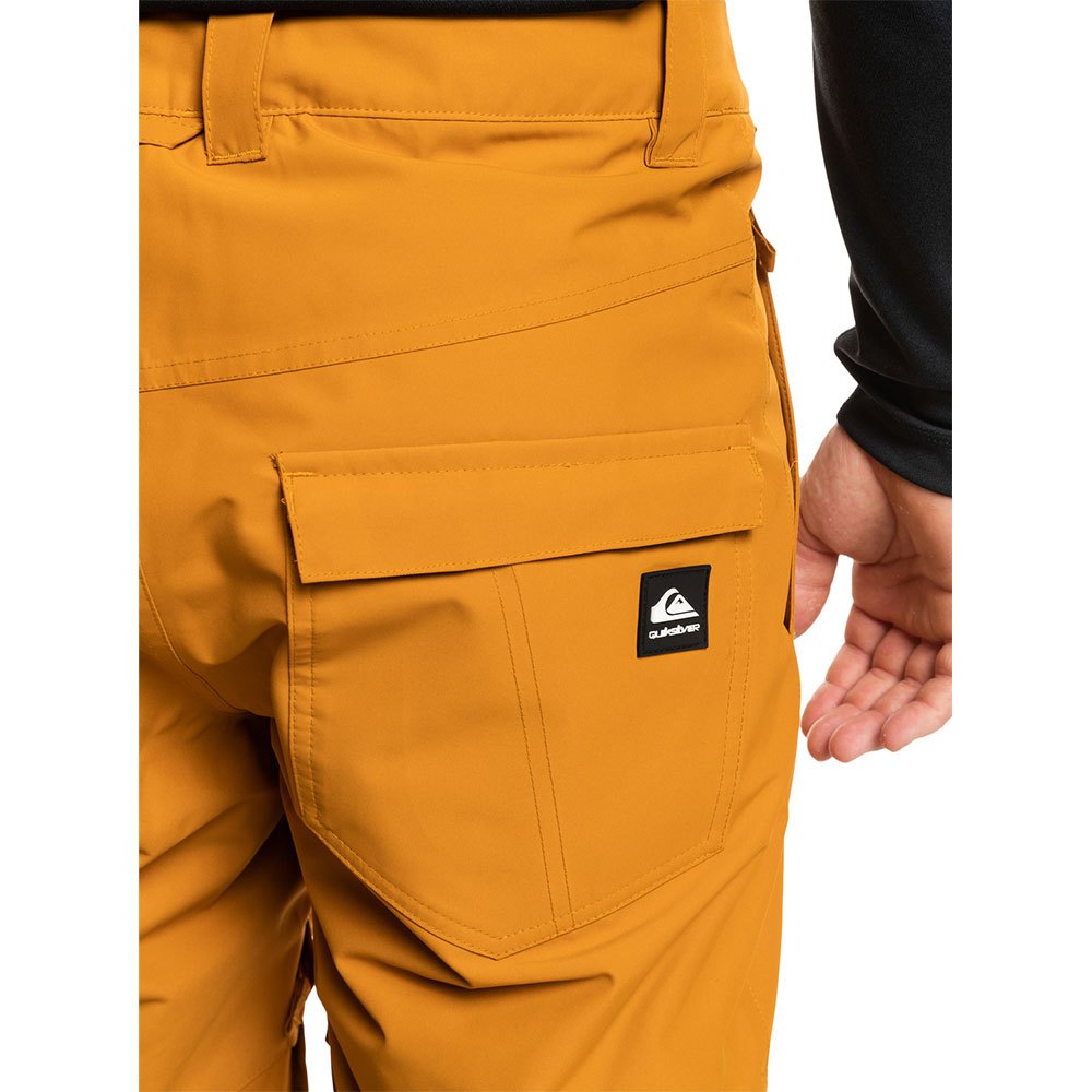Calças de neve para homens com tecnologia Quiksilver DryFlight® 10K para melhor tecnologia de impermeabilização e um tecido reciclado REPREVE ™ rastreável, reciclado de poliéster elástico de 4 vias e tecido texturizado de mescla de poliéster.