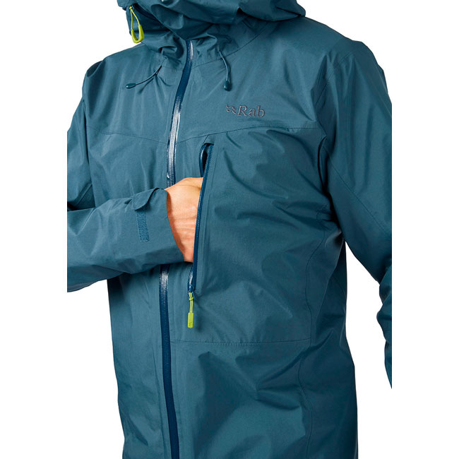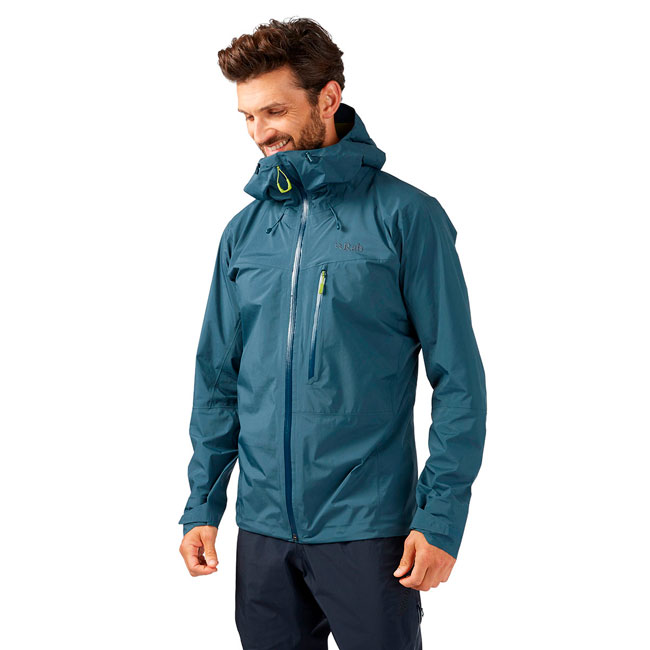 Jaqueta impermeável ultraleve e respirável da marca Rab para montanhistas e montanhistas.