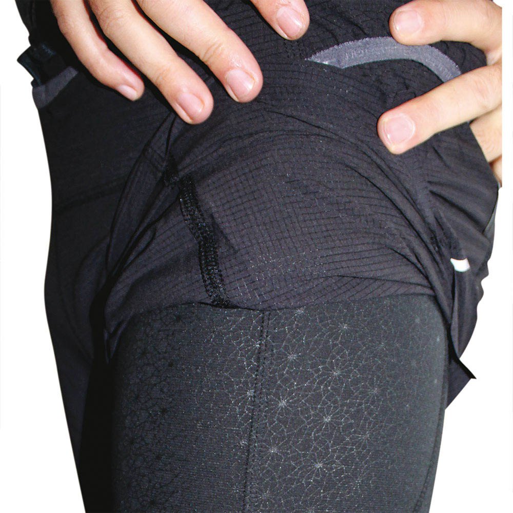 Shorts de compressão embutidos e muito leves, esticam sobre shorts