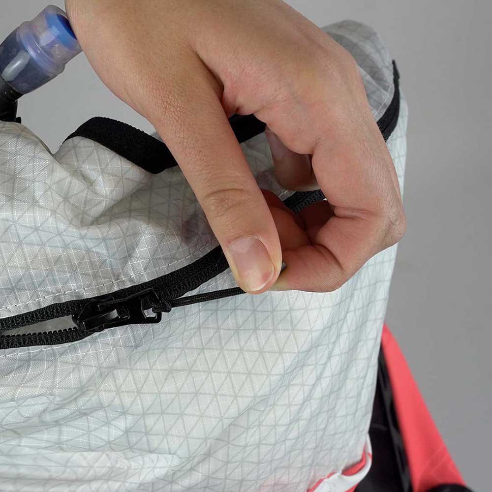 O colete de corrida Ultralight 12L. Apenas 175g para um pack de trail running de 12 litros. O colete é construído usando um tecido de monofilamento para proporcionar uma enorme economia de peso e maior respirabilidade. O sistema de armazenamento de bolso usa tecido reciclado de alta elasticidade, proporcionando alta tenacidade e secagem super rápida para estabilidade e conforto. O bolso traseiro com zíper é resistente à água, além de um bolso inferior com zíper adicional.