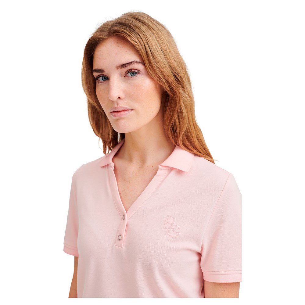 Polo feminino e elegante, ajuste fino. O Polo é feito em uma mistura de materiais, o que o torna muito confortável e macio para usar. O estilo tem uma bordado tonal VerdeVermelho na parte da frente.