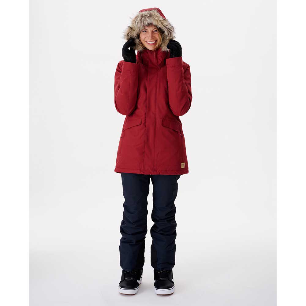 Além disso, tem detalhes nos punho em licra, bolso de passe, bolso para óculos, respiradouros forrados com malha de rede para a prática de esqui e saltos, pelo falso amovível para todos os gostos, e superfície em pó amovível para os melhores dias.