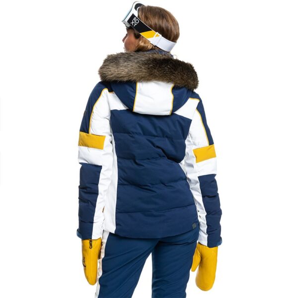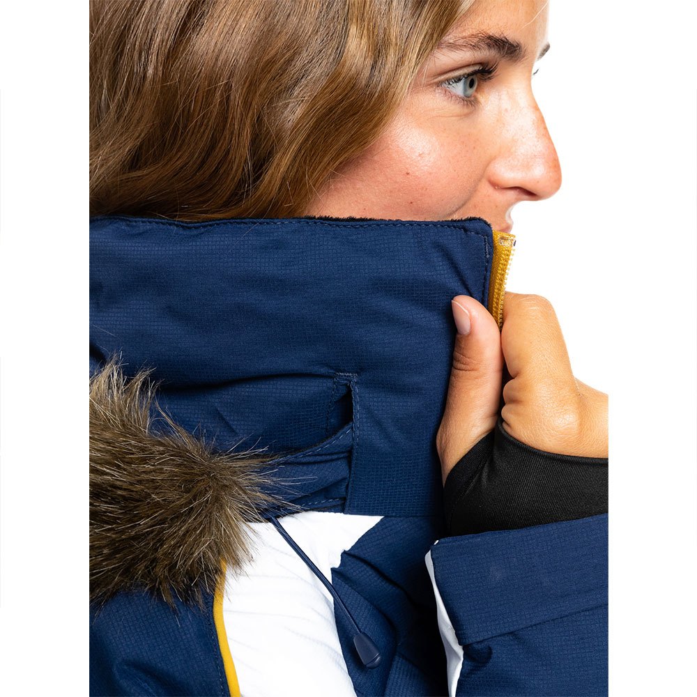 Clipe de chave, saia de pó fixa elástica em forma 3D, sistema de saia de pó snap-away, sistema de fixação de jaqueta à calça, polainas de pulso elásticas internas com orifício para o polegar, ajustador de punho de manga, protetor de queixo, limpador de lentes, tecnologia ROXY HydroSmart integrada na gola, Compatível com o cinto ROXY WarmLink.