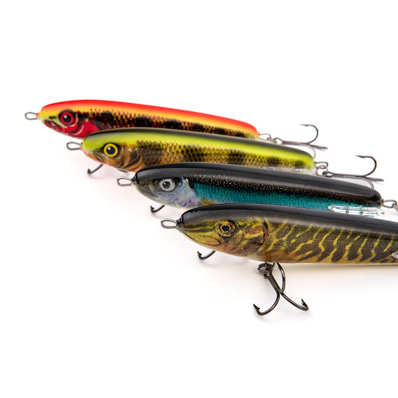 O SALMO Sweeper Sinking Topwater Stickbait é um isco altamente eficaz projetado para atrair peixes predadores como robalo, lúcio e muskie. Com 170 mm de comprimento, este isco é do tamanho perfeito para atrair ataques agressivos de peixes maiores.O isco vem em uma variedade de opções de cores atraentes, incluindo Holo Perch, Holo Red Perch, Holo Smelt e Real Pike. Cada cor é meticulosamente trabalhada para imitar a aparência de um peixe-isca em perigo ou ferido, tornando-o irresistível para predadores famintos.Com uma ação de afundamento realista, o Sweeper Stickbait é projetado para técnicas de pesca de superfície, como Walk the Dog (WTD). Isso significa que, quando recuperado, o isco imita o movimento errático e atraente de uma presa ferida, tornando-o um alvo atraente para peixes à espreita.O SALMO Sweeper Stickbait é construído com materiais de alta qualidade para garantir durabilidade e longevidade durante sessões de pesca intensas. Os anzóis são afiados, fortes e resistentes à água salgada, permitindo que os pescadores atinjam com confiança uma ampla variedade de espécies de peixes.Seja você um pescador experiente ou um iniciante, o SALMO Sweeper Sinking Topwater Stickbait é um isco indispensável na sua caixa de pesca. Sua aparência realista, opções de cores versáteis e ação eficaz de superfície o tornam uma escolha ideal para atingir peixes grandes em ambientes de água doce e salgada.