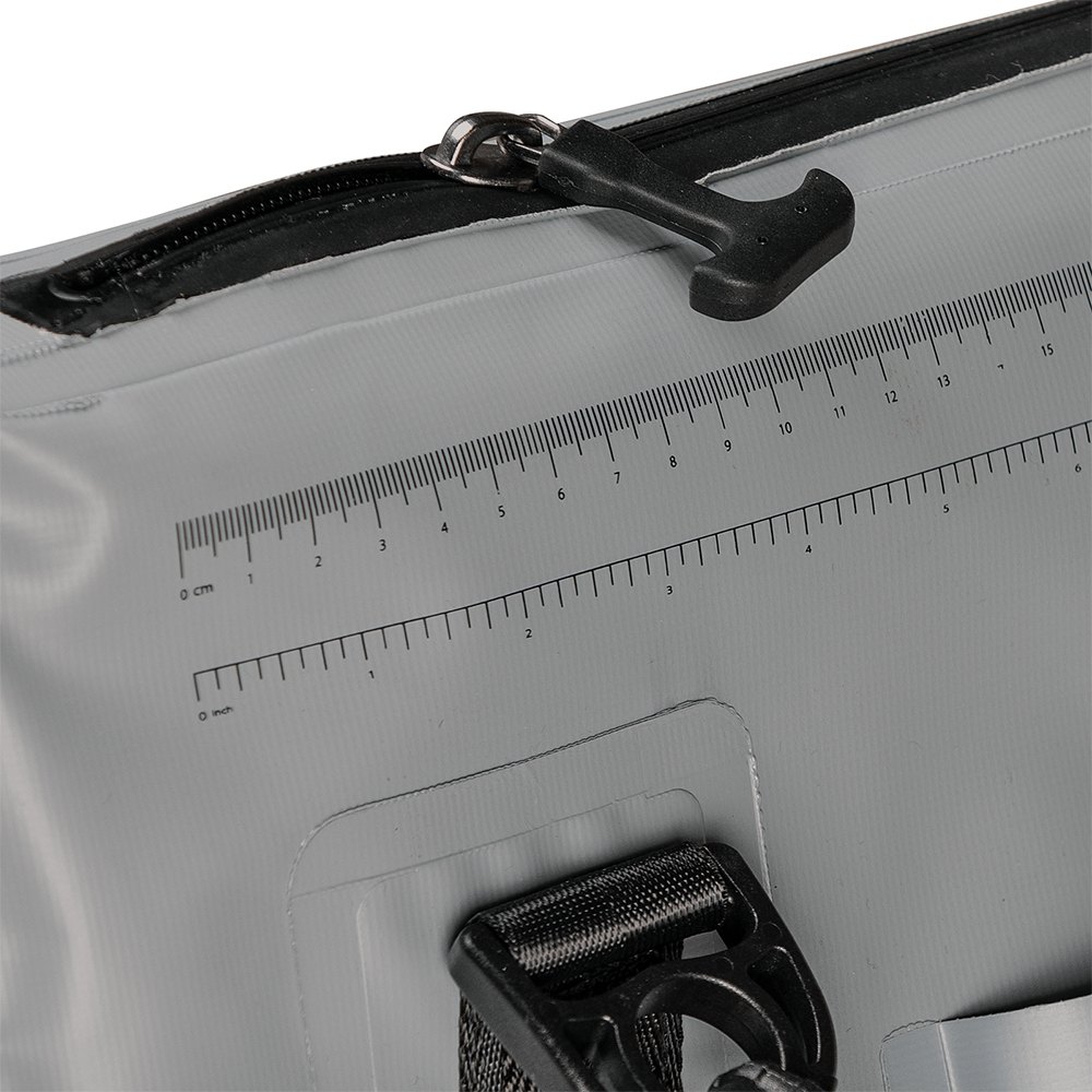– Fecho estanque e válvula de drenagem de água. Alça de ombro e alças de transporte, ilhós para fixação durante o transporte. Escala externa em cm/polegadas para medir a captura.