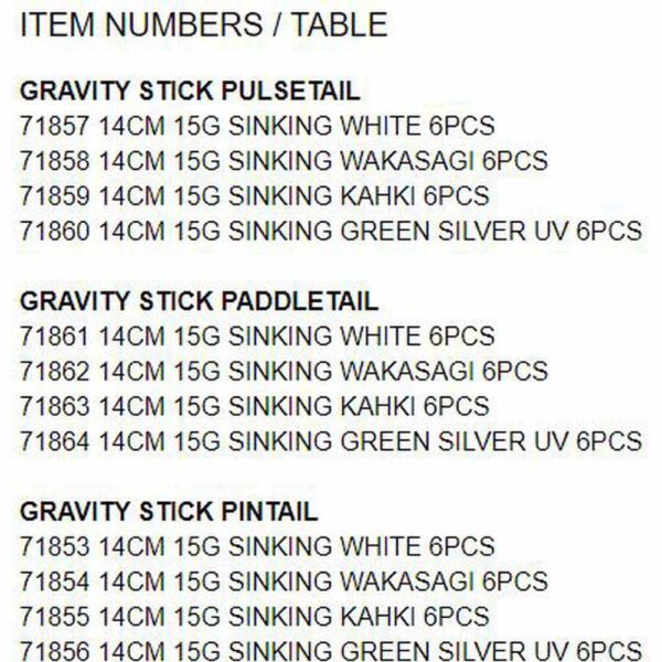 Um perfil estreito, longa gama de lançamento de iscas macios com uma alta densidade. Todas as iscas têm uma ranhura de chocalho no corpo principal e uma ranhura de peso de inserção na área da cauda para adicionar ainda mais distância ao gesso, se necessário. O nariz das iscas é perfeitamente desenhado para fácil montagem em nossos pequenos caronas. A parte de trás de cada isca tem uma ranhura rebaixada para nossos ganchos sem ervas daninhas 6/0, além de um ponto de entrada de guia de ganchos na barriga para amarração precisa e fácil. Pintail uma isca de estilo twitchbait versátil que ganha vida em uma contração / pausa / recuperação de contração, mas também nada com uma ação curva S sutil em uma recuperação direta rápida a média e, em seguida, um sutil “sem ação” em uma recuperação lenta. O Pintail tem uma ótima ação secundária na queda onde ele treme e se agarra! Pulsetail oferece uma ação de cauda pulsante muito sutil e realista em uma simples retirada em linha reta, onde o corpo da isca deliberadamente tem um perfil “sem ação”, enquanto a cauda pulsa sedutoramente o tempo todo. O Pulsetail nada perfeitamente em uma variedade de velocidades e também funciona na queda, onde seu sutil tremor e cauda pulsante podem realmente colocar o peixe em movimento! Paddletail uma recuperação direta produz uma ação de chute e balanço muito viva ao longo de todo o comprimento da isca.Projetado para ficar ao lado do Pintail e do Pulsetail, o Paddletail desloca água suficiente para deixar os peixes selvagens, mas ainda pode ser pescado de forma muito sutil, se necessário.