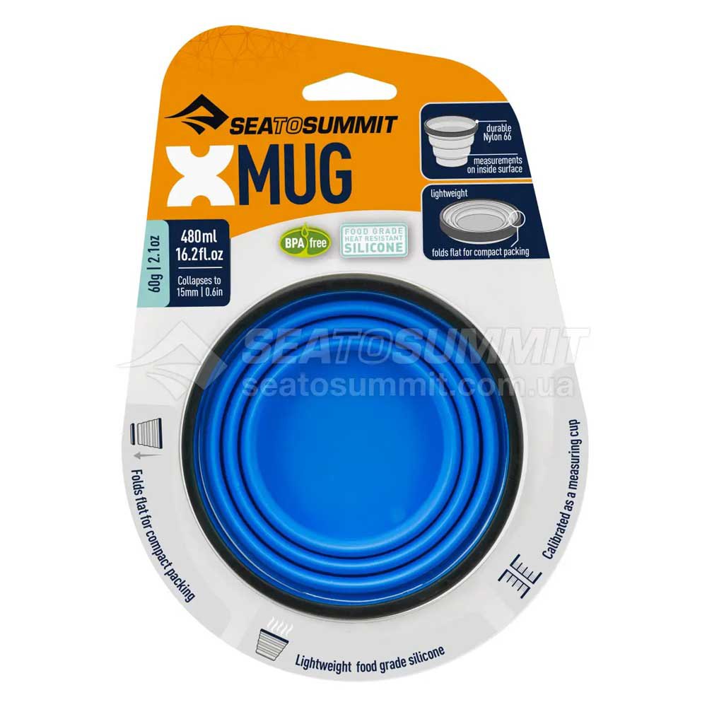 A caneca X é uma caneca dobrável que também é calibrada como um copo de medição. Os lados flexíveis de silicone dobram-se, tornando-o uma peça de louça do tamanho de um pequeno disco compacto que se encaixa perfeitamente com outras louças da série X e panelas X. O anel rígido dentro do aro o mantém resistente e fácil de beber.