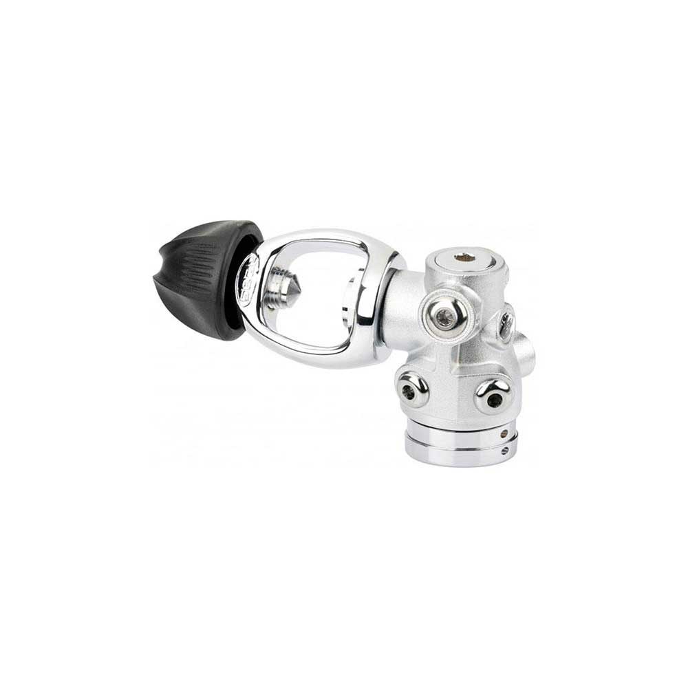 A primeira fase consiste em uma membrana compensada hermeticamente selada que proporciona maior segurança e otimiza o sistema de inspeção externa. A segunda fase tem o efeito Venturi que diminui o esforço respiratório. SEAC DX200 Ice INTYoke Regulador.