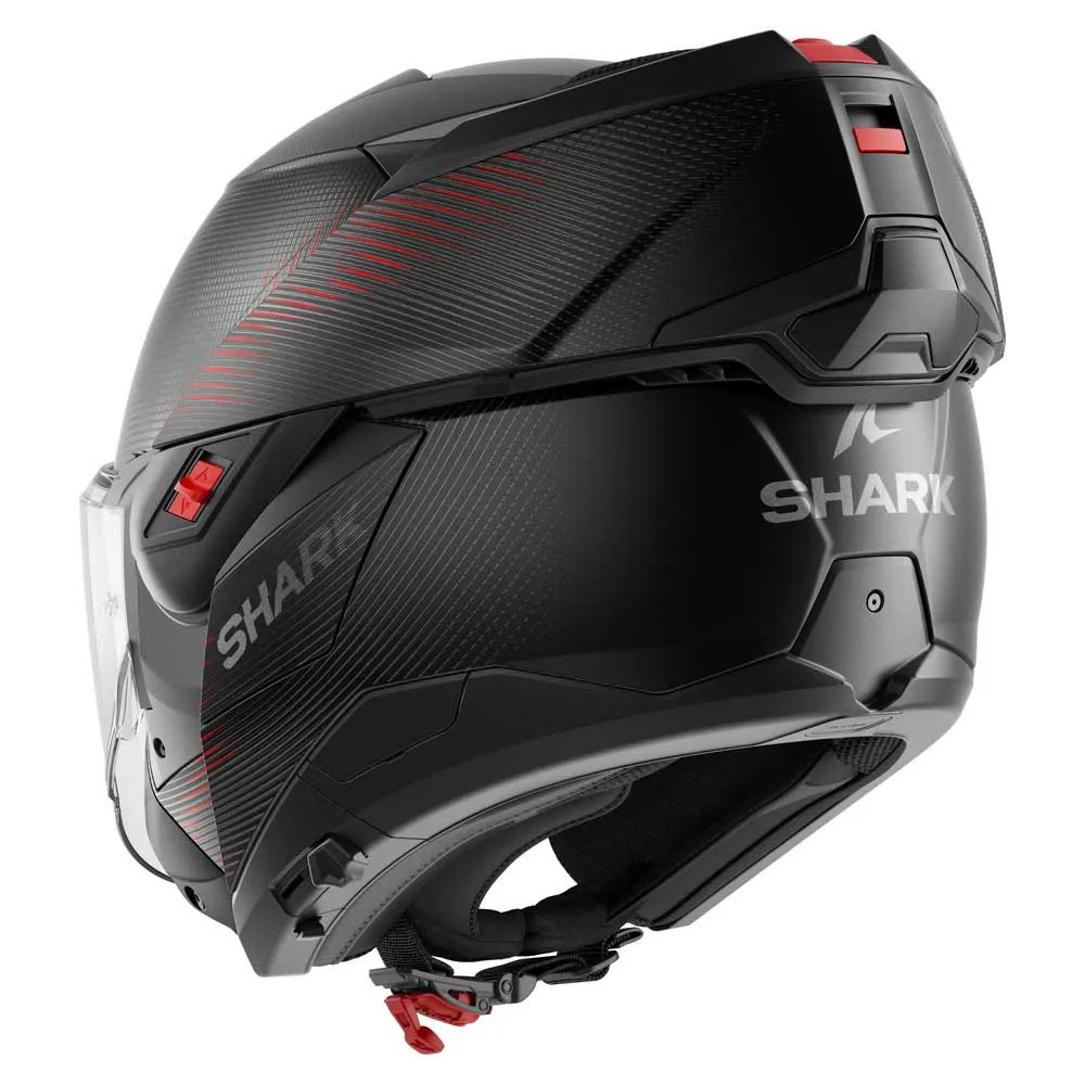Espaço dedicado para o intercomunicador Sharktooth® Aerodinâmica e ventilação: Spoiler duplo com extratores de ar integrados: