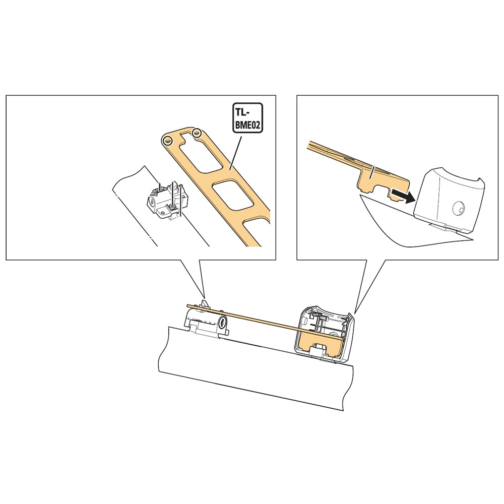 O TL-BME02 é uma ferramenta de medição especial ou modelo para o alinhamento exato e instalação correta dos suportes de bateria SHIMANO STEPS BM-E8010 e BM-E8016.