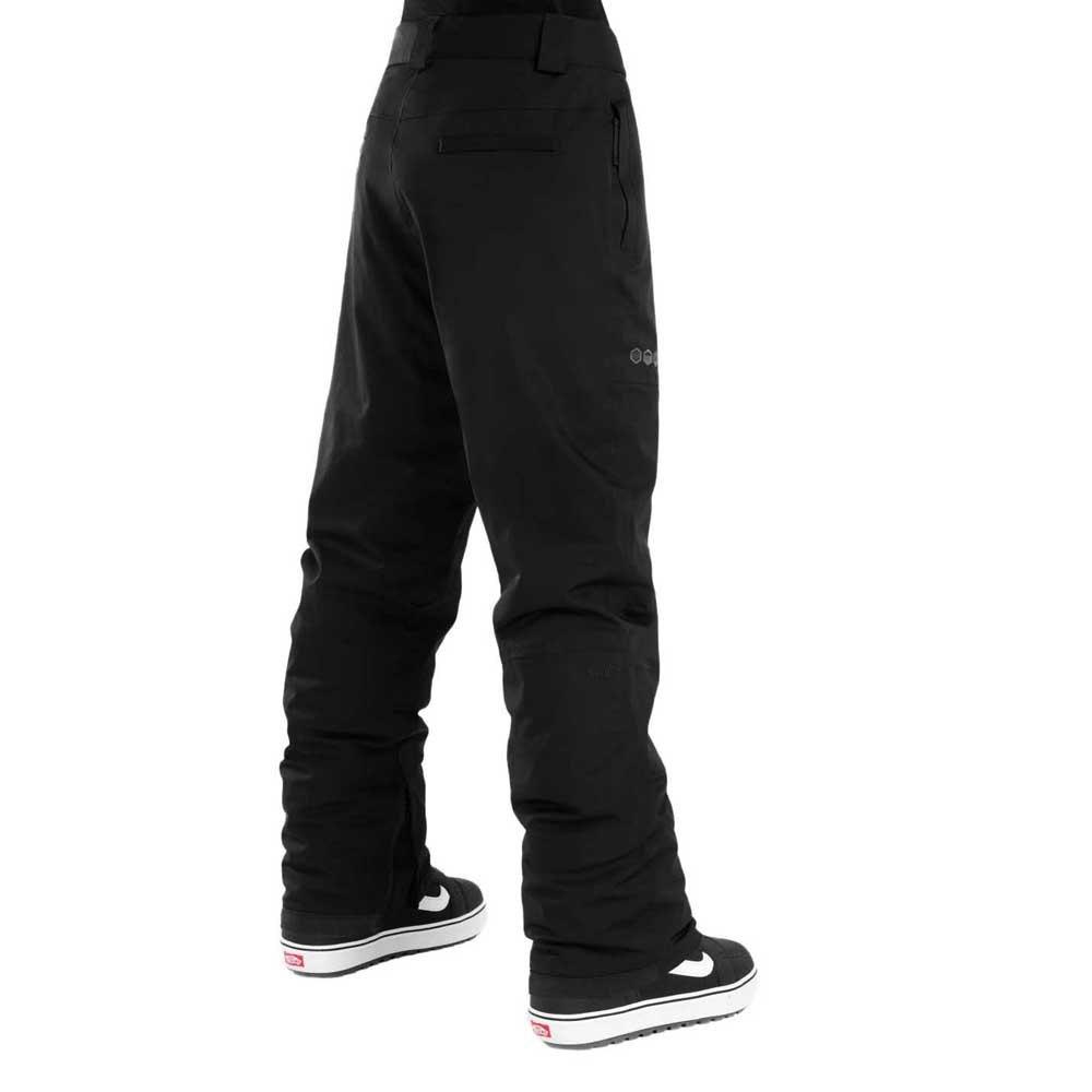 Seu ajuste solto com joelhos articulados permite total facilidade de movimento em todos os momentos. O fecho de zíper reforçado com botão de pressão duplo, além de um cós ajustável com abas de velcro nas laterais, garantem um ajuste e conforto ideais. Eles apresentam um suporte de passe de esqui no passador do cinto e quatro bolsos com zíper, dois nas laterais e dois nas costas.