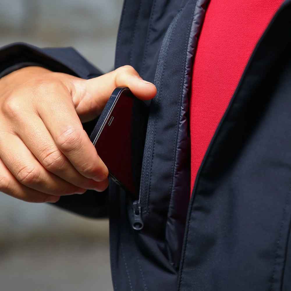 – Bolso interno com zíper, bolso para celular em AWEX que protege contra as ondas eletromagnéticas do telefone