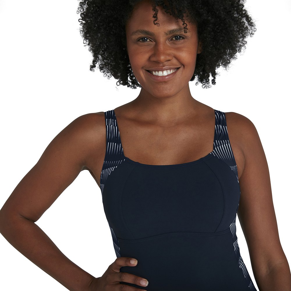 O suporte médio para o busto molda o tecido e a costura apoia e embeleza o busto, e as alças ajustáveis garantem um ótimo ajuste