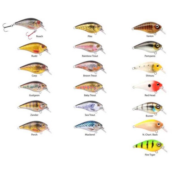 | Cor | Baby Trout, Brown Trout, Buzzer, Carp, Colorido, Firetiger, Gudgeon, Mackerel, N Chart Back, Perch, Pike, Pompano, Rainbow Trout, Redhead, Roach, Rudd, Sea Trout, Shirazu, Varion, Zander |