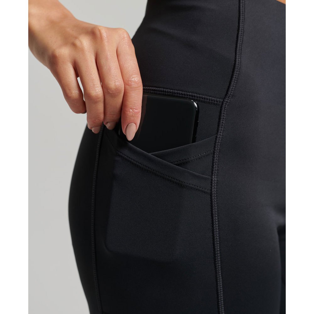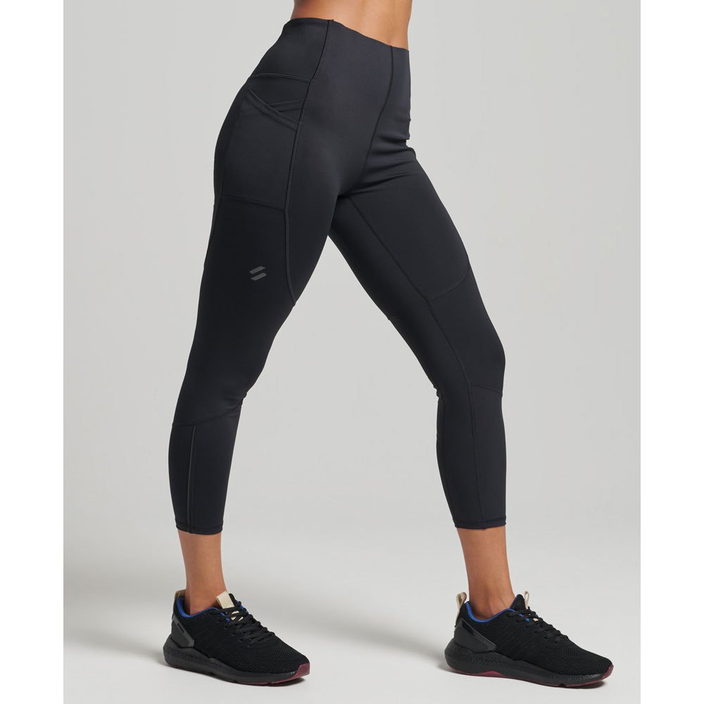 Um ajuste modelador do corpo, justo ao corpo, Tecido respirável Permite que o ar e a umidade passem pelo material para ajudar a mantê-lo confortável, Absorção de umidade Ajuda a regular a temperatura do corpo, afastando a transpiração do corpo e permitindo que a umidade se espalhe do exterior face do tecido, costuras planas travadas, cintura alta, bolsos cruzados, debrum reflexivo e branding.