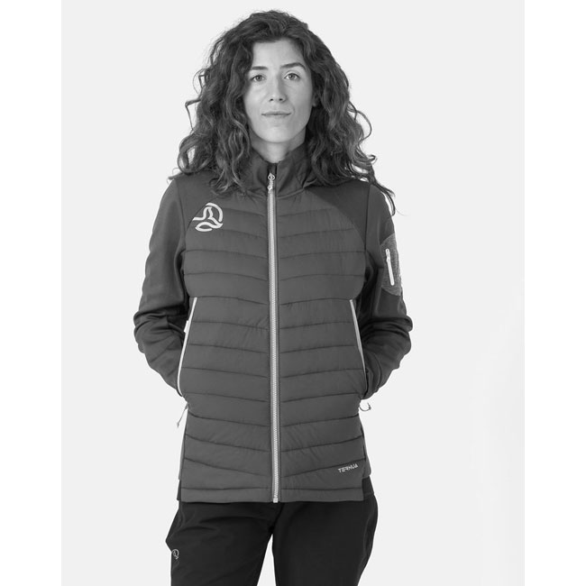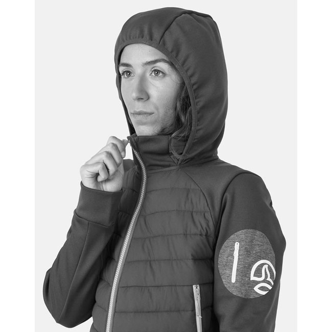 É uma peça de vestuário muito isolante graças ao enchimento sintético reciclado PRIMALOFT THERMO PLUME (100 gr), com um comportamento muito semelhante a um 500 CUINS FILL POWER down. Suas mangas, laterais e capuz são confeccionados em WARMSHELL reciclado. Além disso, seu tecido externo é elástico e muito resistente feito de nylon ripstop reciclado. E seu forro e enchimento interno em poliéster reciclado de garrafas plásticas pós-consumo; todos os seus materiais são certificados pela BLUESIGN(R).