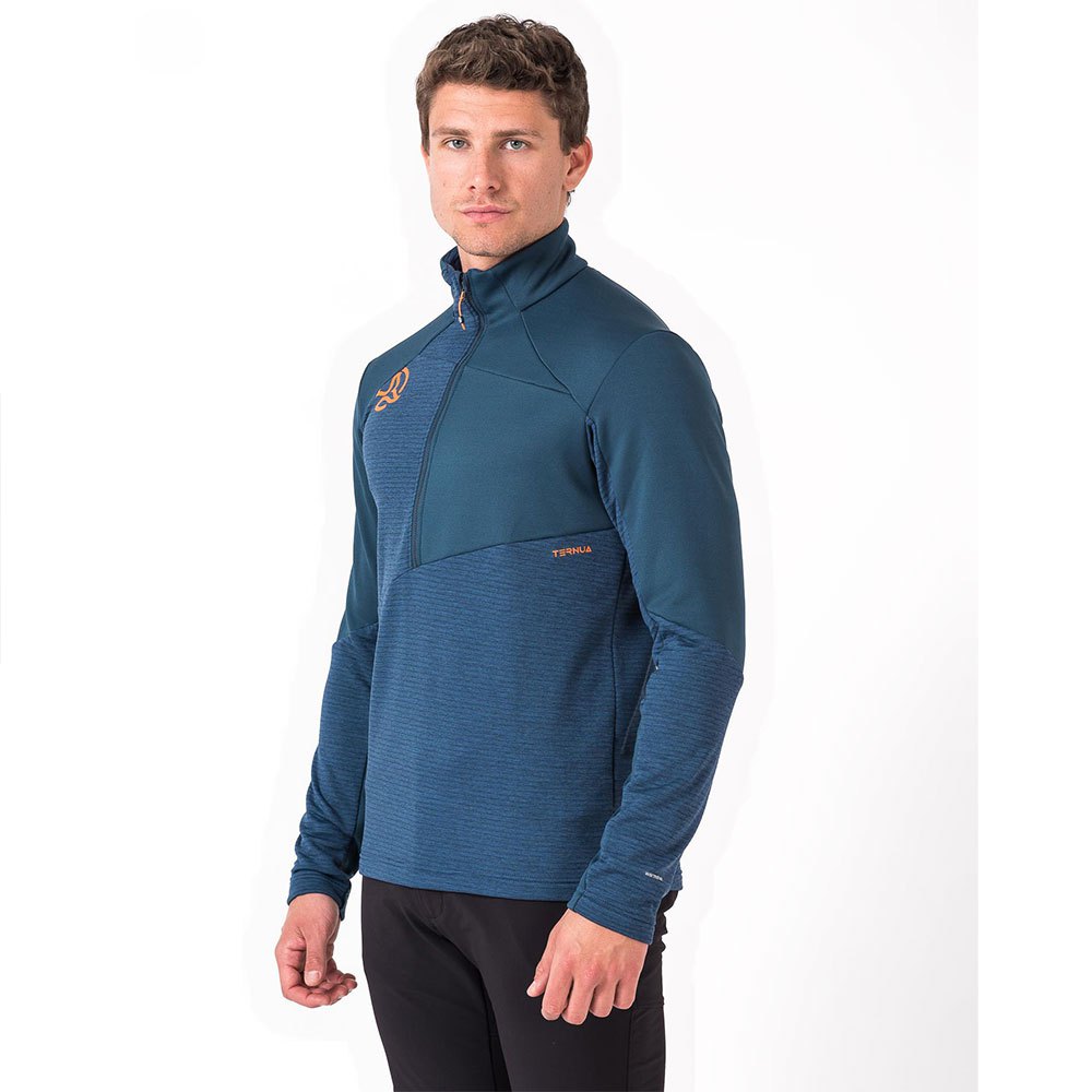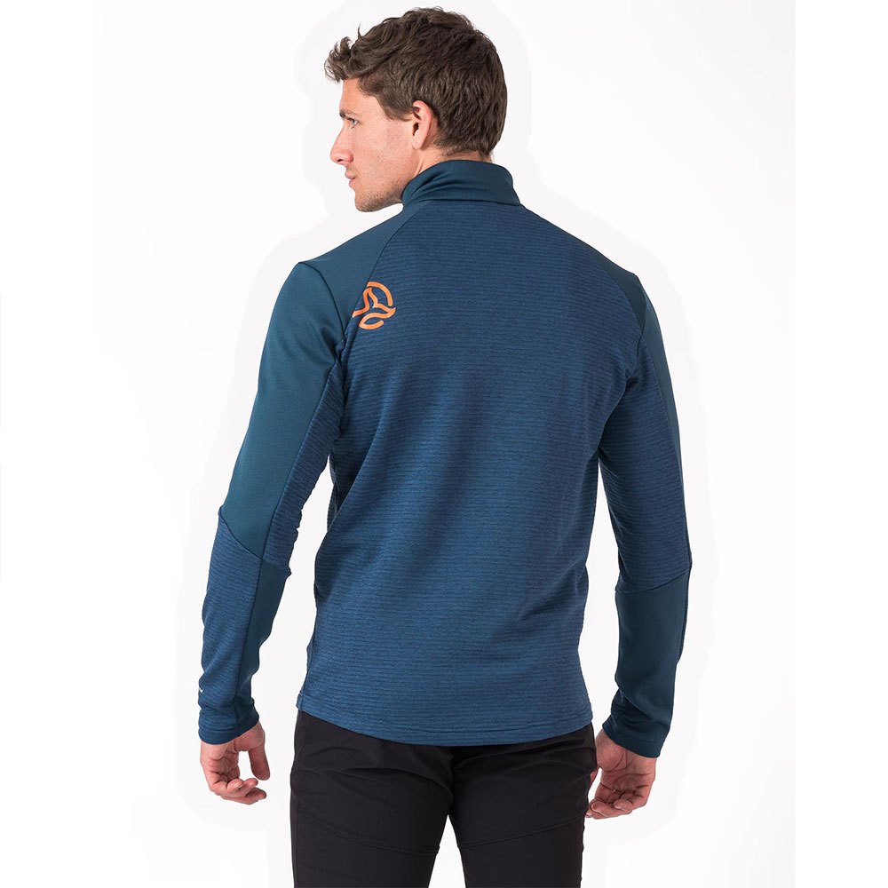 Camada segunda atividade multi-uso com zíper extra longo, que combina dois tecidos reciclados WARMSHELL, que são leves, quentes, respiráveis e rápidos para secar.