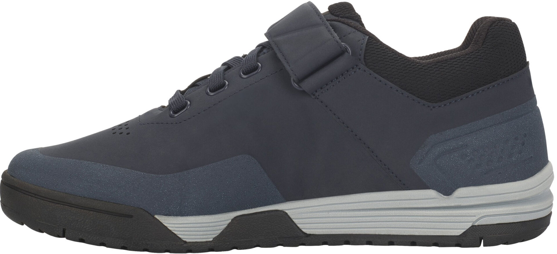 O Dust Up é um sapato de pedal plano de baixo perfil projetado para uso em qualquer terreno. Feito de couro sintético TPU respirável, seus pés se sentirão enérgicos o dia todo e a sola de borracha patenteada "praticamente amortecida" absorve energia e vibrações durante o passeio.
