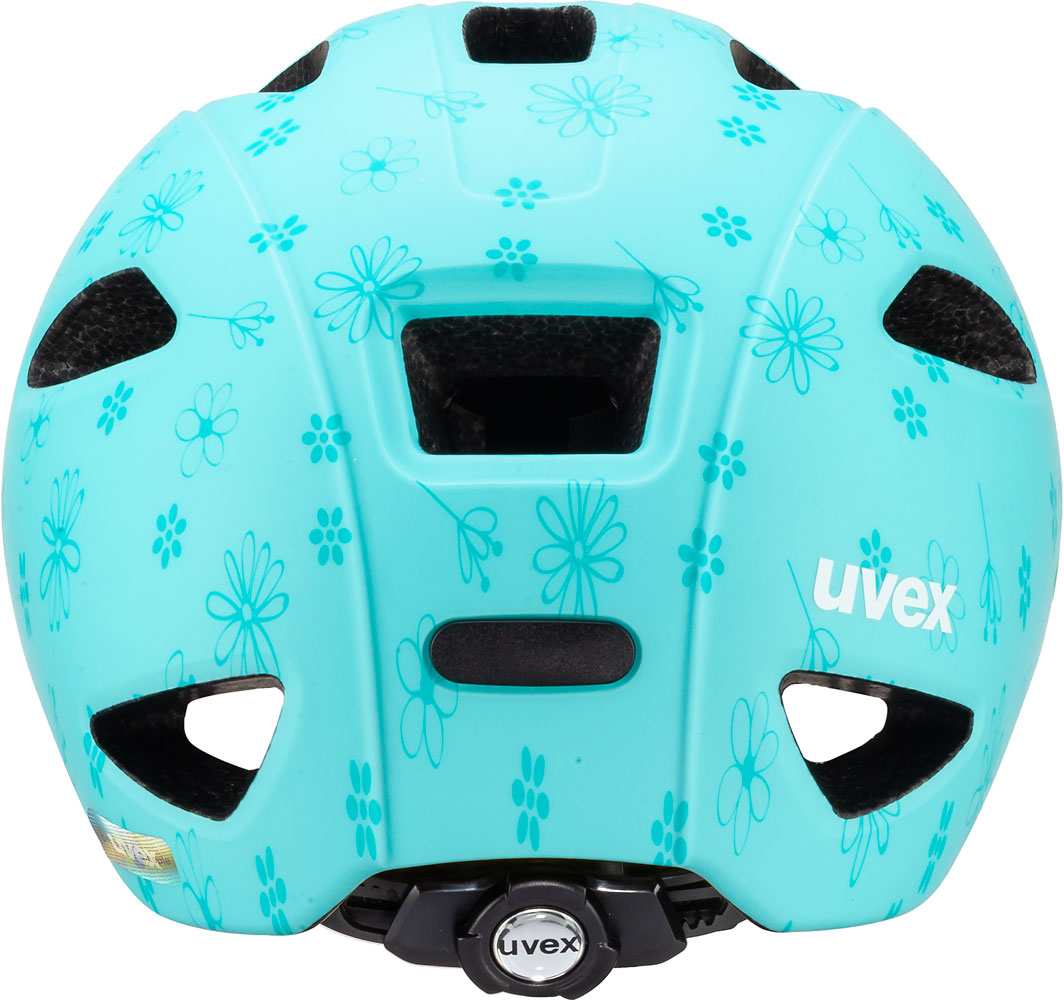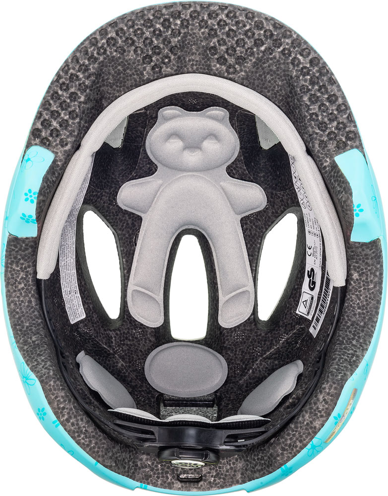 The safety of babies and toddlers has top priority. That’s why a suitable bike helmet should be worn on the little head even on the very first bike ride in a child’s seat. It has to be nice and light, but also super safe. The uvex oyo cc convinces all along the line with its child-friendly design, soft bear padding and first-class protection. Thanks to the innovative Kids Extra Protection System (KEPS), in which the shield of the helmet is integrated into the EPS material, the sensitive forehead area is optimally protected in an emergency. Particularly clever: the Baby Buffer attached to the back of the head reduces vibrations that are transmitted to the helmet on uneven paths through the child’s seat and also prevents the head from slipping off the back of the seat.