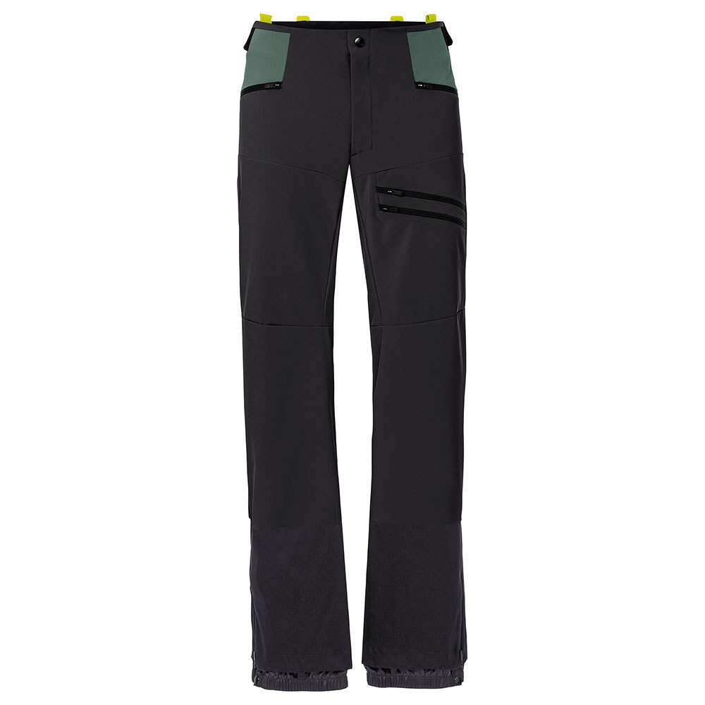 As calças leves Monviso Softshell para mulheres são excepcionalmente confortáveis e permitem que você se mova livremente em longas e longas excursões de esqui em terreno alpino. O material repelente à água dessas calças masculinas de esqui é absolutamente à prova de vento, mas elástico e altamente respirável. Os zíperes de ventilação laterais longos fornecem fluxo de ar confortável em subidas extenuantes, os bolsos com zíper permitem acesso rápido mesmo quando o arnês de escalada está preso. A cintura é um pouco mais alta na parte de trás e pode ser confortavelmente ajustada em largura, os joelhos articulados garantem ainda mais liberdade de movimento. Os punhos das pernas com zíper são protegidos de bordas afiadas com um robusto Cordura® e podem ser deslizados sobre suas botas de esqui de forma rápida e fácil. Um bolso de remendo na perna com zíper manterá seu telefone, chapéu ou barra de energia segura e à mão. As Calças Softshell Masculinas são feitas principalmente de um material reciclado e também fazem uma valiosa contribuição para o meio ambiente. Como membro da organização independente de roupas justas com status de líder, a Vaude está comprometida com condições de trabalho justas e salários justos. Além disso, este produto é neutro para o clima – analisamos e reduzimos sistematicamente todas as emissões decorrentes de materiais, fabricação e remessa.As emissões que são atualmente inevitáveis foram totalmente compensadas pela organização independente sem fins lucrativos Myclimate.