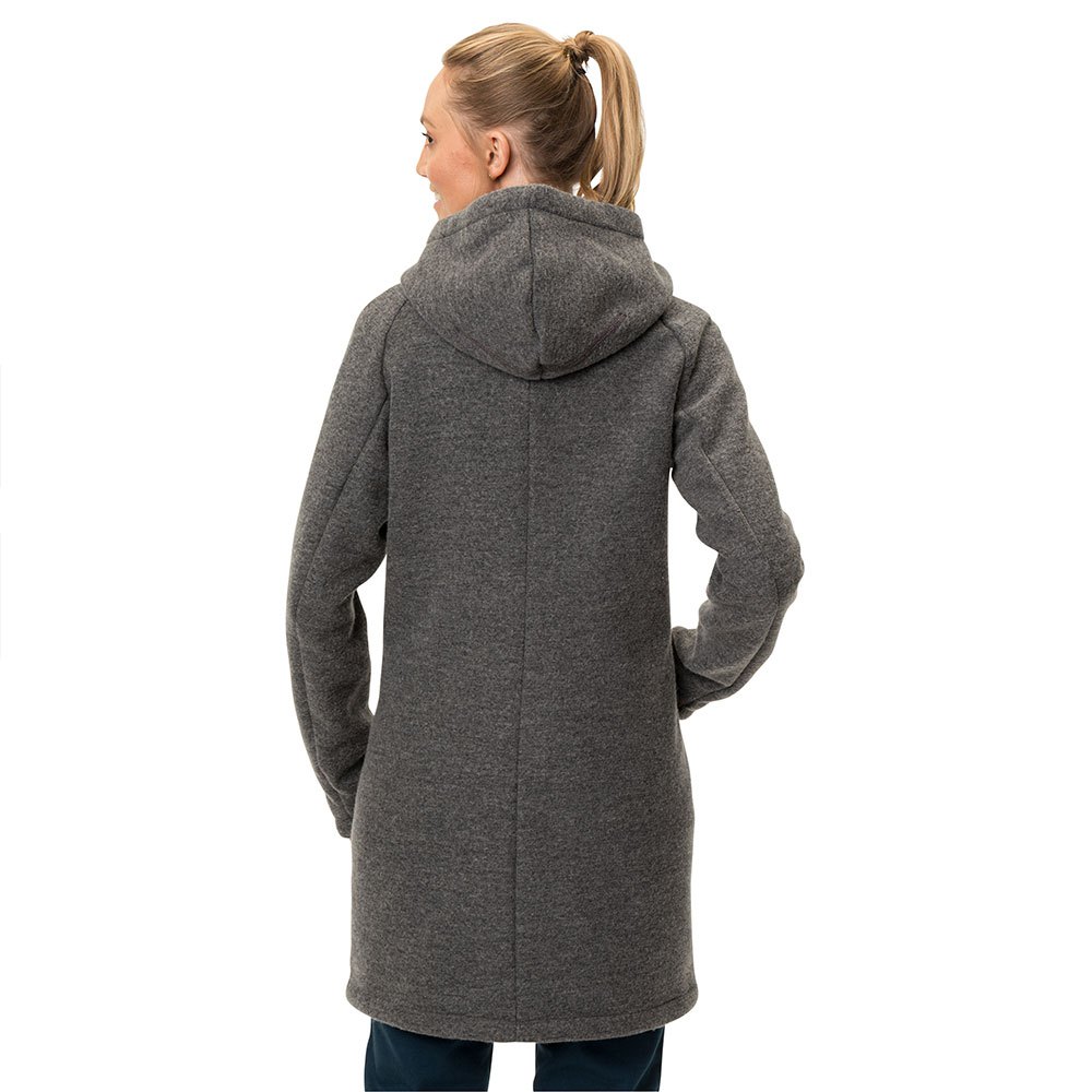 Chic, tecido de mistura de lã fácil de cuidar com forro interno de lã macia, ideal para temporadas de transição. O que você certamente notará neste casaco de corte generoso é o capuz integrado e os punhos largos nas mangas e na bainha inferior. O zíper frontal bidirecional fornece acesso fácil aos bolsos das calças, dois bolsos deslizantes para manter suas mãos aquecidas. O material macio e ecológico oferece excepcional conforto de uso e uma sensação de calor e aconchego em dias frios. O rótulo VAUDE Green Shape significa produtos ecologicamente corretos e funcionais feitos de materiais sustentáveis.