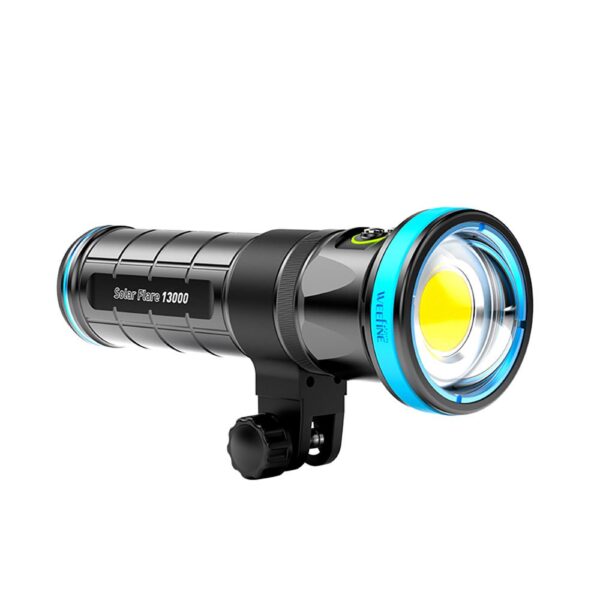 A unidade de luz está equipada com uma lente de grande angular que suprime os efeitos de ampliação da água e mantém o feixe de ângulo ultra-amplo de 150º mesmo sob água.