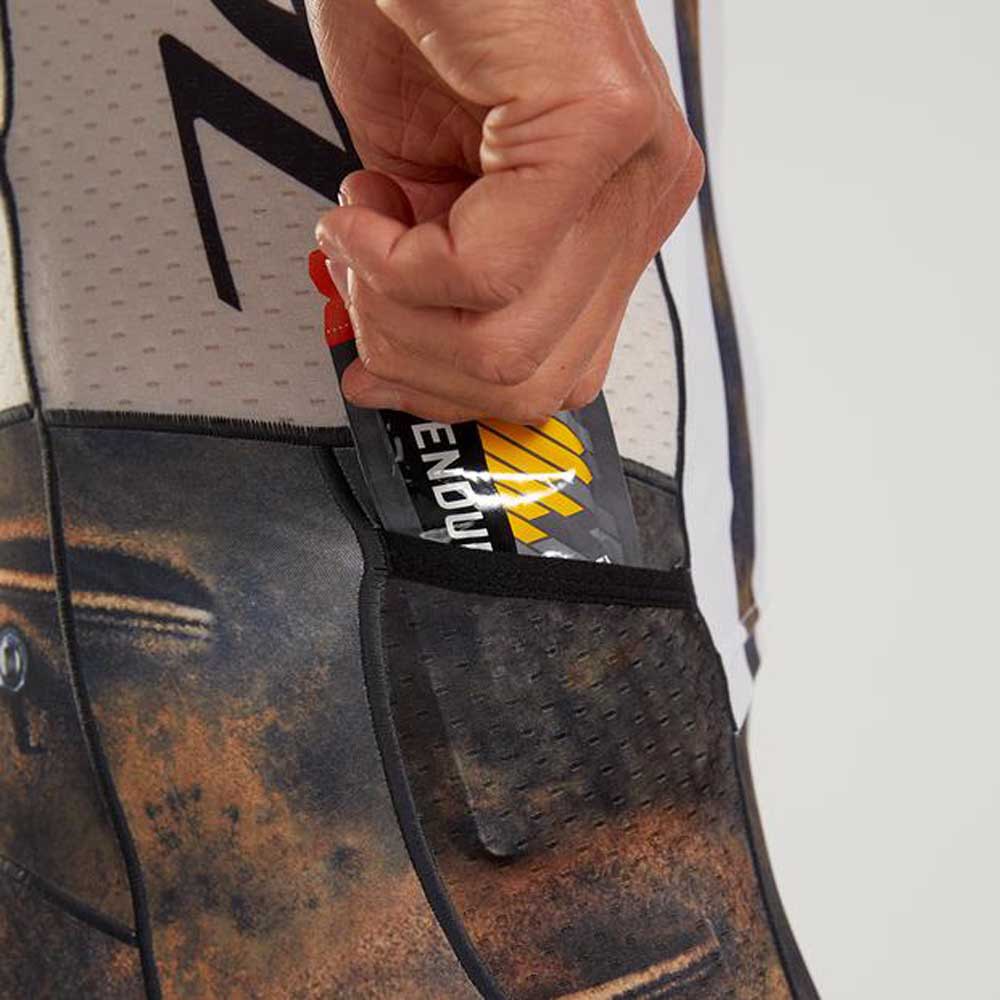 O NEW LTD Tri Aero Full Zip Racesuit promete entregar no dia da corrida! A estrutura nervurada do tecido High Speed Light Aero é colocada em áreas críticas da vestimenta para reduzir o vórtice de ar que é gerado atrás do atleta e, consequentemente, reduz o arrasto e economiza watts. O design zip completo permite paradas rápidas e fáceis.
